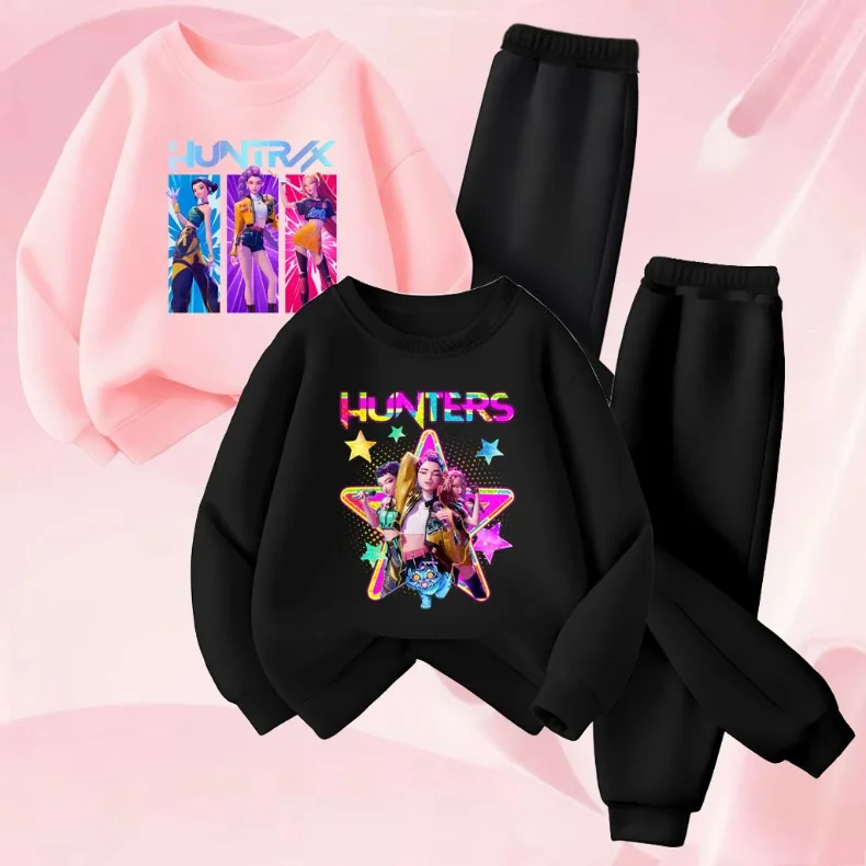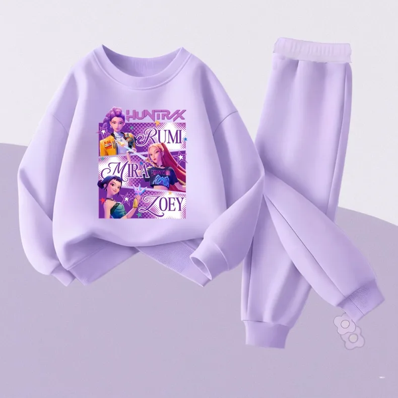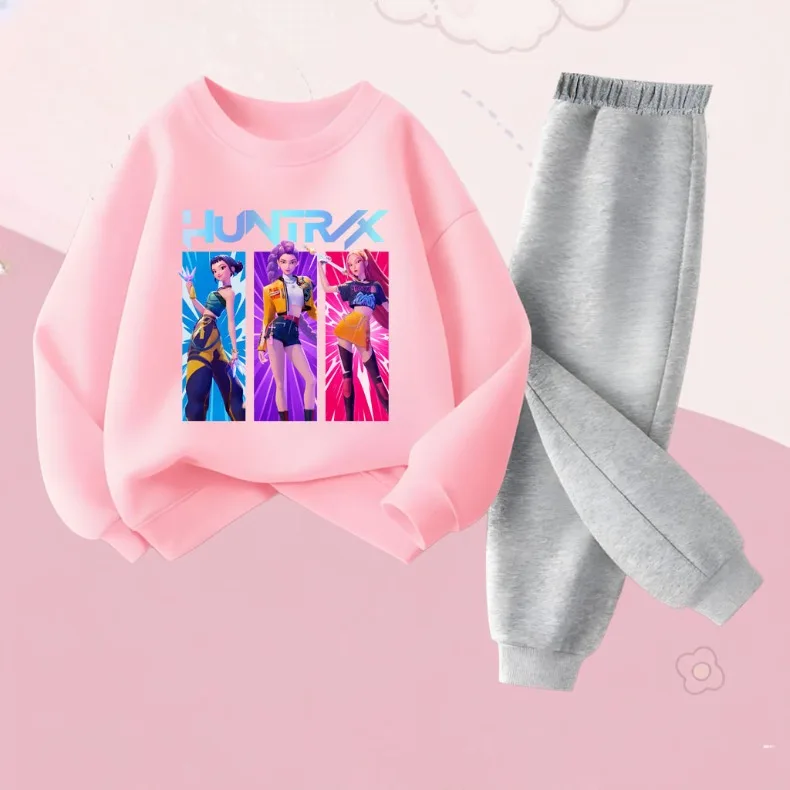 K-POPcartoon Printed Spring Autumn Girls O Neck Hoodies Sets Children Sweatshirt Sweatpant 2pcs Suit Kids Casual Pullover Set